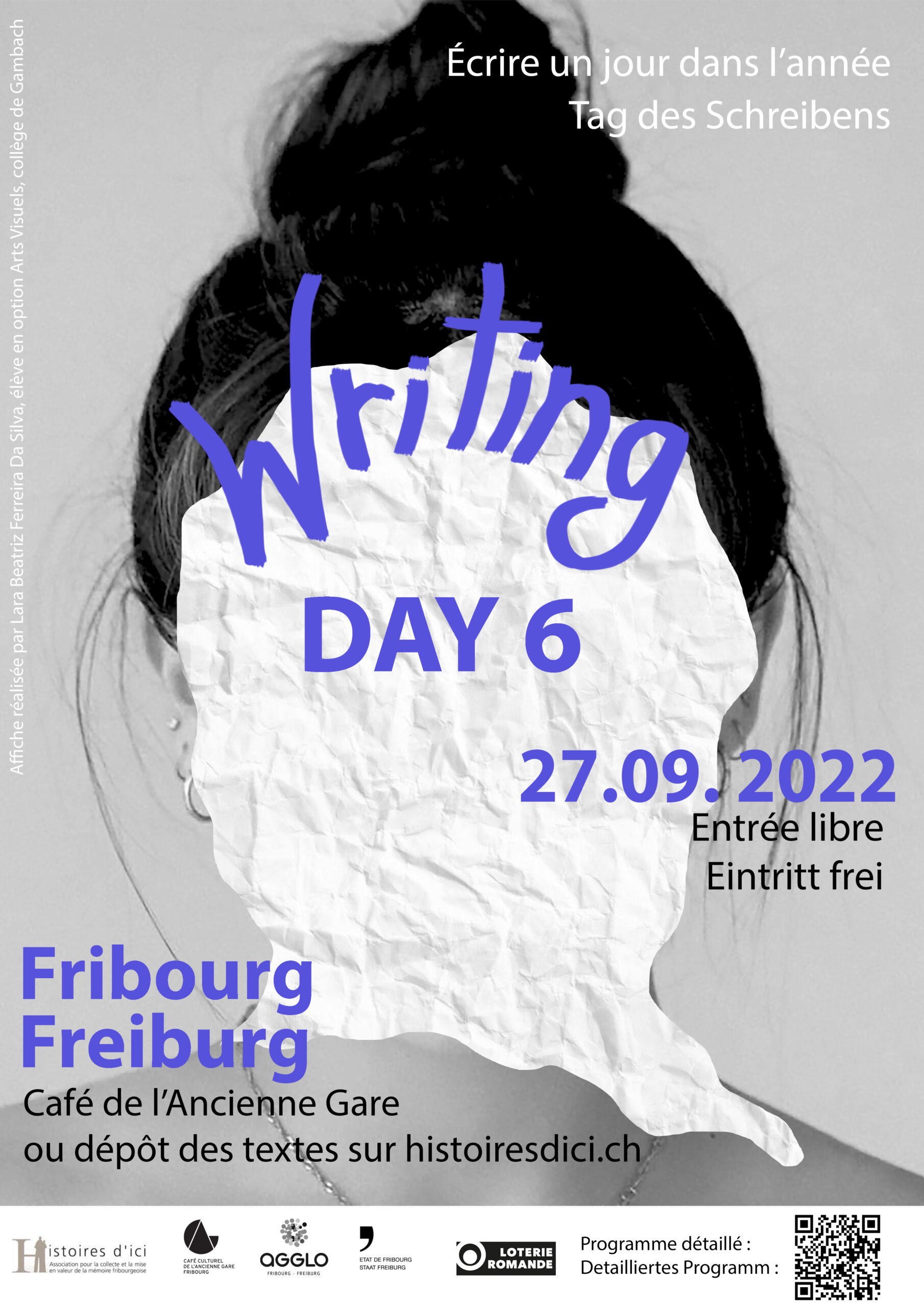 Le Writing Day 7 s’est tenu le mercredi 27 septembre 2023. Outre un dépôt en ligne, vous pouviez rédiger vos textes dans différents lieux inspirants tels que le café de l’Ancienne Gare, la BCU, MEMO ou la librairie Albert le Grand.